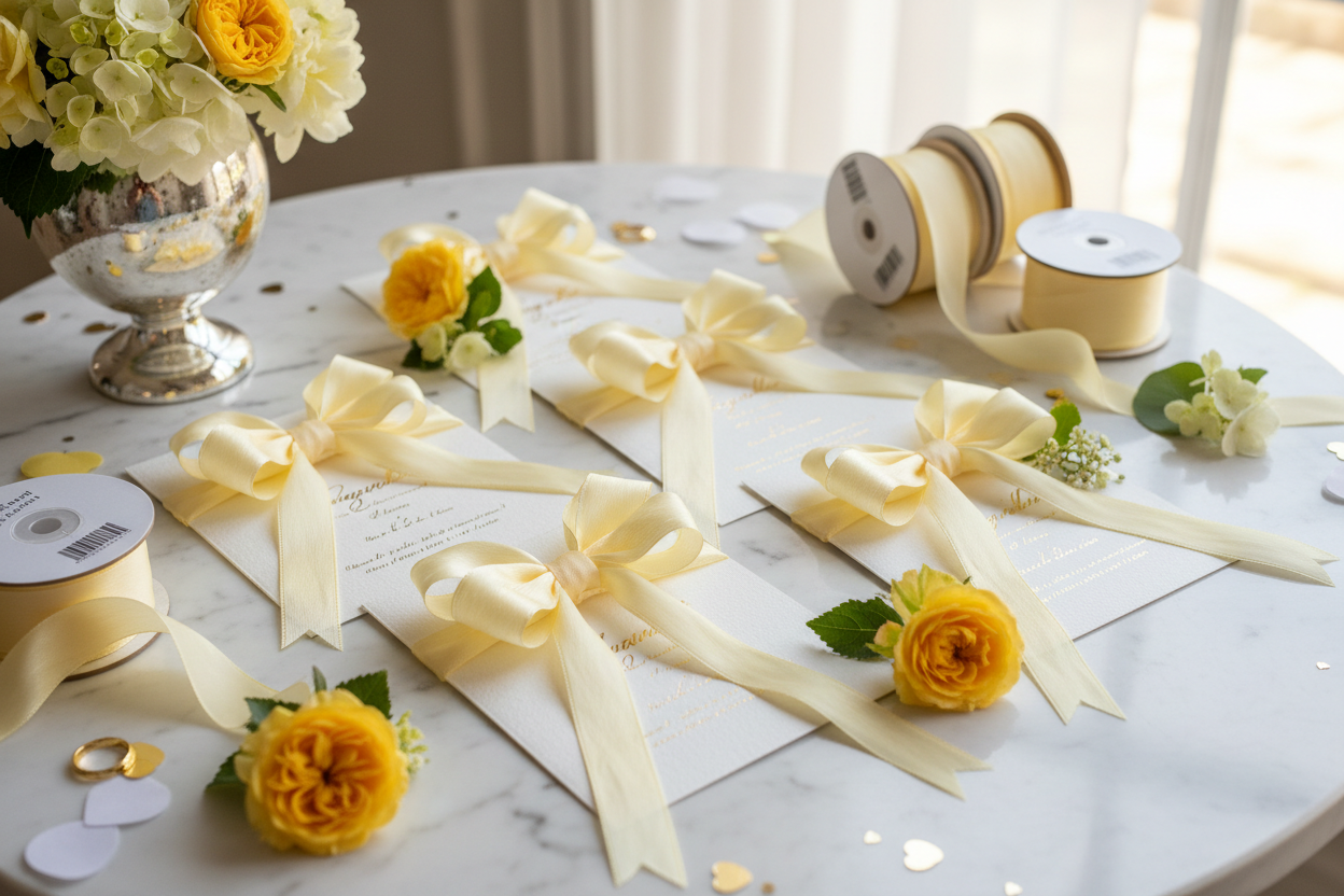 Knitsilk Luxurious Dupioni Satin Ribbon (1.5 "x 7yds x 3count), Yellow Ribbon Set for Gift Wrapping, Decorating Bouquet Wrap and Crafts